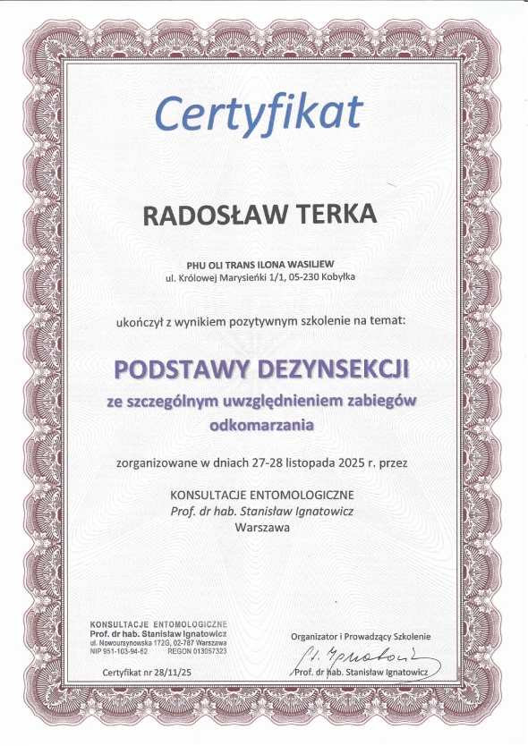Nasz zespół stale podnosi swoje kwalifikacje poprzez uczestnictwo w szkoleniach i kursach z zakresu dezynfekcji dezynsekcji i deratyzacji.